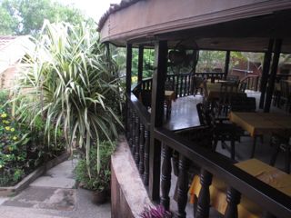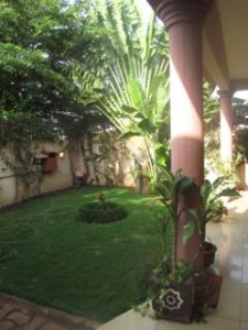 I liked this place the second we pulled in. It was a walled, leafy complex with little bungalows nestled into shady gardens. The room was comfortable with sweet views into garden areas and……it had a TV, cold AC, and free wifi! As much as I bitch about technology ruining my life, these bits of technology made me very happy at this moment. We sprawled on the bed letting the cold air fill the room while we read through a weeks’ worth of Facebook postings and drank icy Cokes. The Internet was fast as lightning, a luxury we don’t have in Bamako, so we downloaded things like crazy, AND watched YouTube clips without any any buffering. Ah, the simple things in life can be so satisfying. That evening we walked to Vic Baboos restaurant where they had American, Chinese, or Indian food. I opted for sweet and sour chicken and a really large Ghanaian beer that took the edge off quickly.