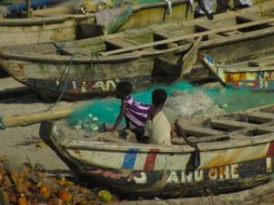 So my parade was rained on a bit since I hadn’t factored in a knifing during this vacation. We did frolic in the water, without anything but ourselves and our bathing suits, and not one stabbing occurred. It’s a working beach so there was always something to see-the wooden boats coming ashore with nets full of fish and lobster and ladies carrying baskets of stuff on their head, like baggies of water to drink or a heaping basket of bras in a variety of delightful colors and patterns, such as camouflage.