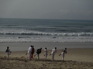 The next day was marvelously sunny and we were excited to hit the beach after being in landlocked Mali for the last two and a half months. I read a little notice on the back of the door that said the beach was safe to walk