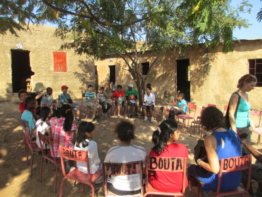 IMG_2524 Published December 9, 2012 at 1280 × 960 in Chapter 17: Is This Blog About: (a) Peri-urban Slums, (b) Malaria, (c) Multiple-Choice Questions, or (d) All of the Above? Q & A with the school’s director in the shady courtyard.