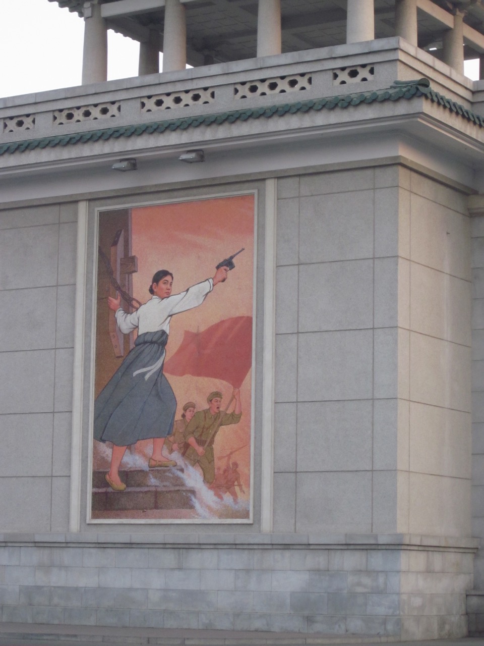 img_0426 Published September 24, 2016 at 960 × 1280 in Chapter 33: Flu Time in a Totalitarian Dictatorship, or Why I Came Home with Three Toblerone Chocolate Bars One of the grand theatre is adorned with this mural of a peasant who is packing.