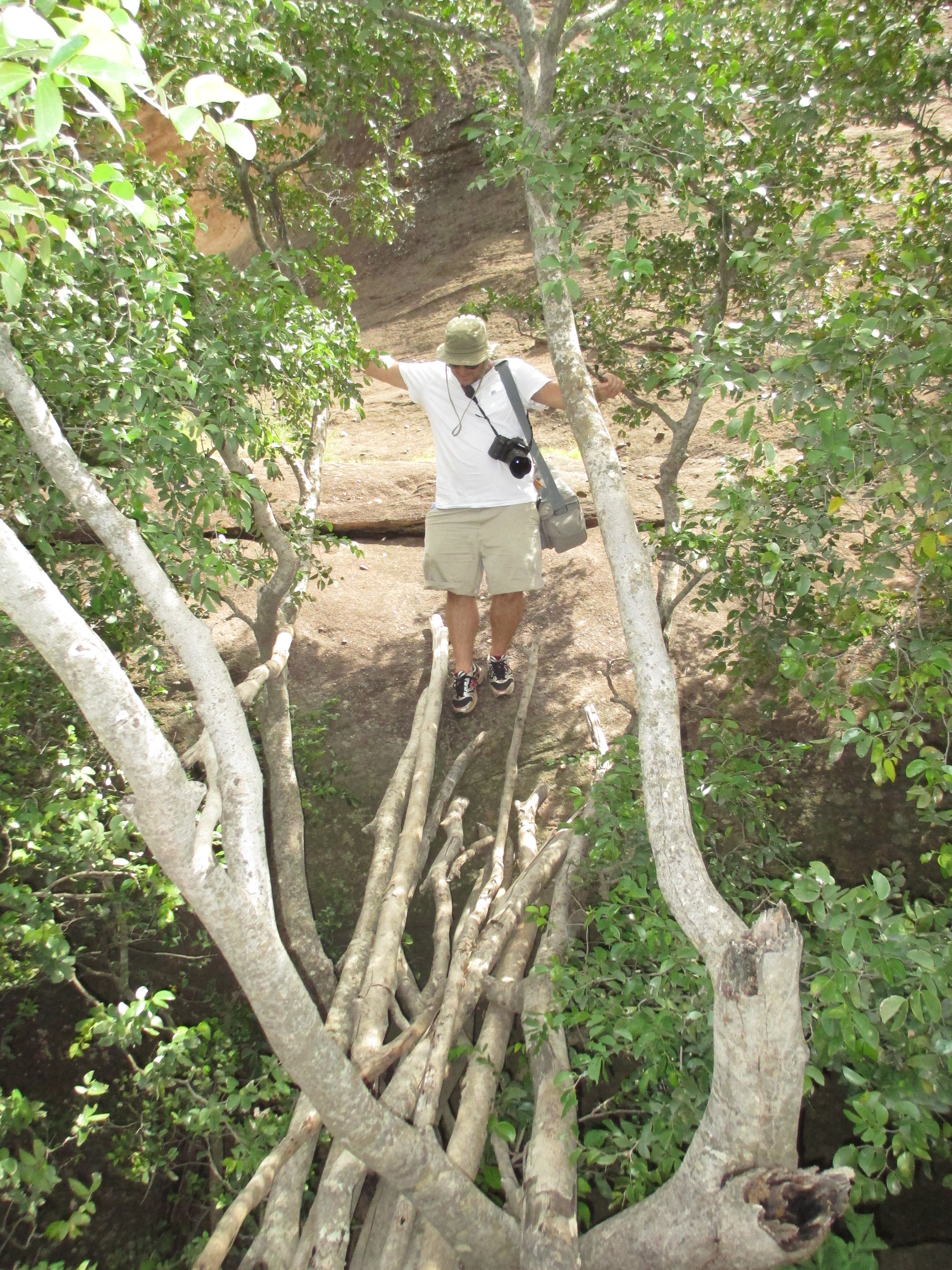 After picking the grass and seeds from my teeth and hair I did take note of the stupendous view in all directions and was thankful we had risked our lives getting here because at least the photos would be awesome. Then our colleague says, “Now we just cross over this little bridge and climb that,” as she pointed to another steep rock face that seemed to go to the moon. The “bridge” was 6 tree branches laying