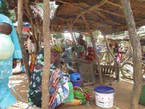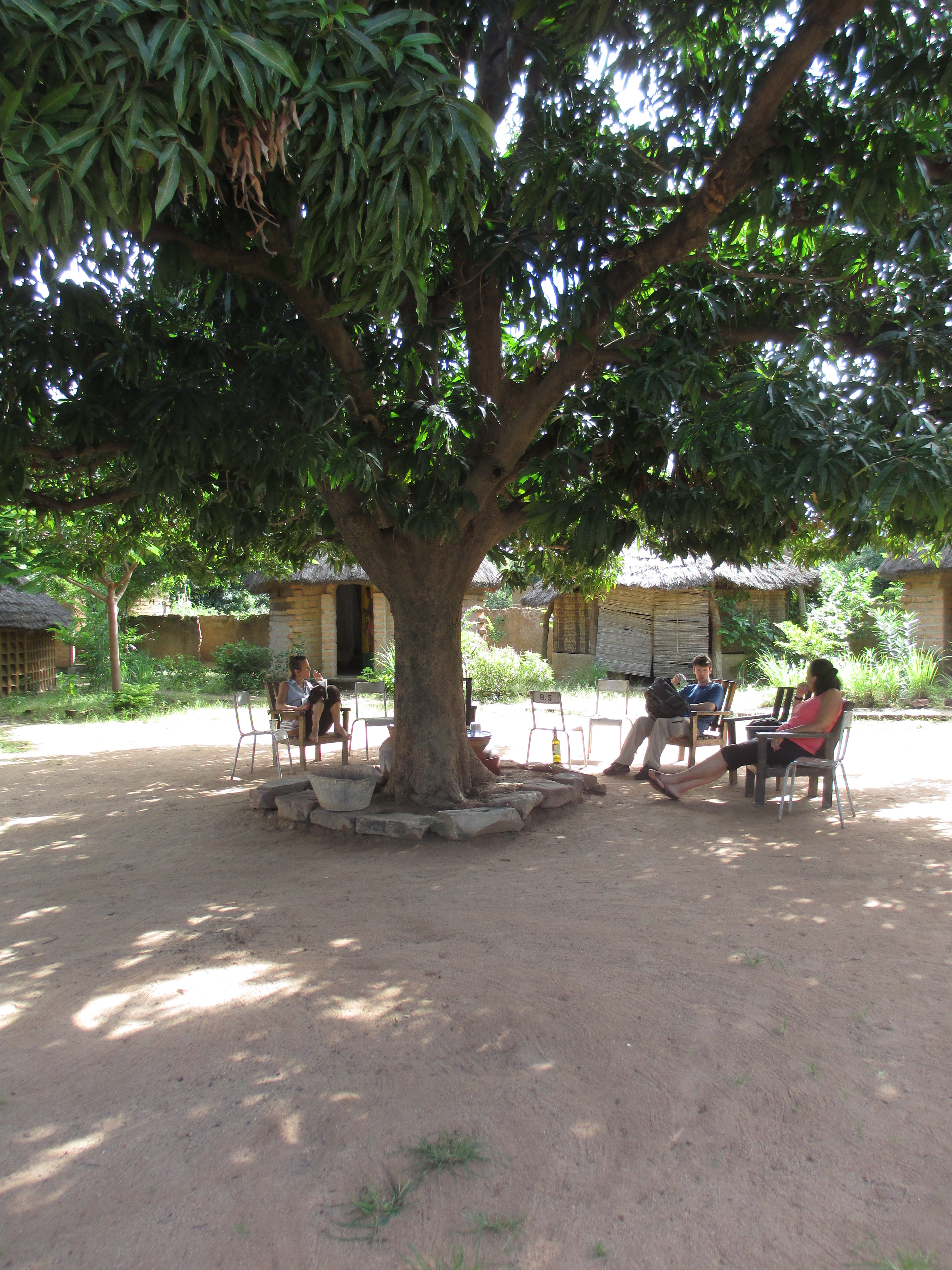 We ate delicious couscous, chicken, and a great sauce and talked for hours. Back at the compound we sat in chairs under a big mango tree and sang songs as a colleague played the guitar. Sleeping was okay at first since the fan kept us cool. But the electricity stops at midnight in the village so I awoke to a hut with air so close and still I was thinking I had been laid to rest in a tomb. Not much sleep, but the mug shower the next morning woke me up.